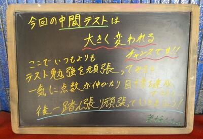 10/6(月)・7(火)に中間テストがあります。テスト期間中は、『ノーテレビ・ノーゲームDAY』啓発運動を実施しています。生徒たちがテスト勉強に集中できるよう、自らテレビやゲーム、スマホ等のSNS使用を律するとともに、ご家庭でのご協力をお願いいたします。