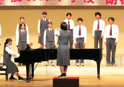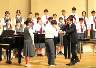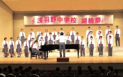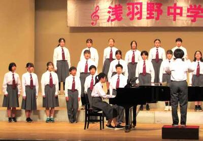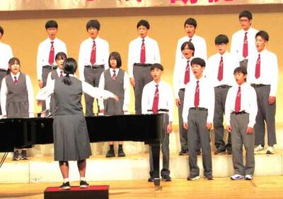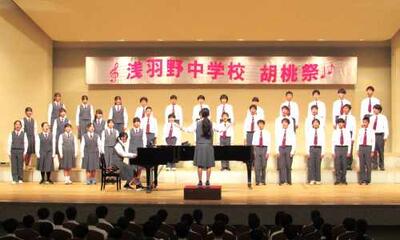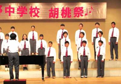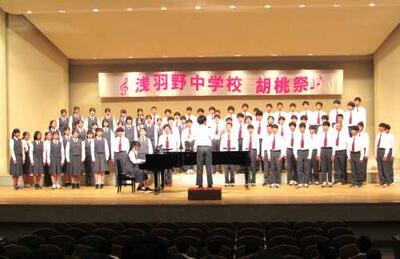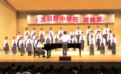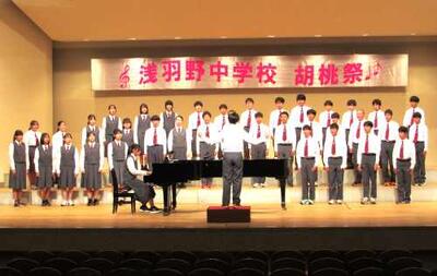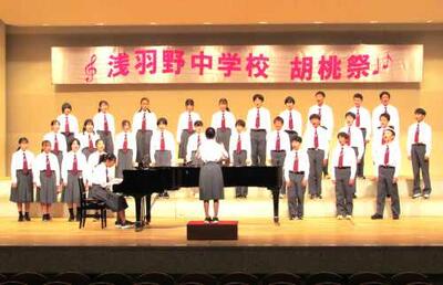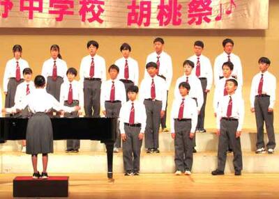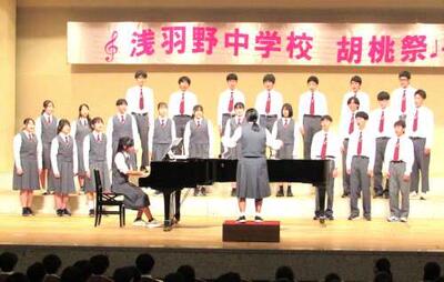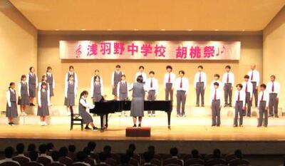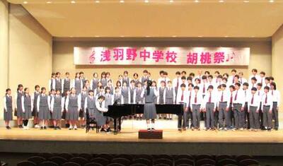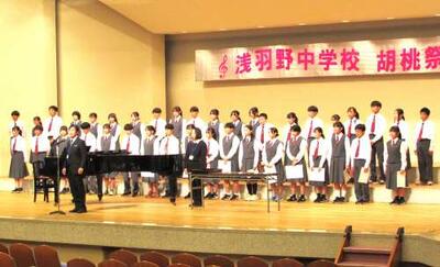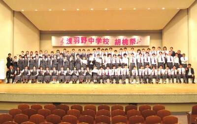 【胡桃祭・合唱の部】これまで仲間たちとの絆を深めながら、一生懸命に練習を重ねてきた本番の晴れの舞台も、いよいよフィナーレ!今年度は新しい試みとして、各クラスが課題曲と自由曲の2曲をステージで発表。そして、永久保存版としてのDVD録画。この日まで浅羽野中は、音楽の授業だけでなく、生徒たちが自主的な練習を積極的に行い、まさに『歌声が響く学校』でした。最優秀賞を目標にしながらも、さらに「一流」の歌声、姿を目指した浅中生たち!仲間たちとの絆の深まりを感じながら、たくさんの学びのある合唱コンクールでした。浅中生よ、最高の感動を有難う!!