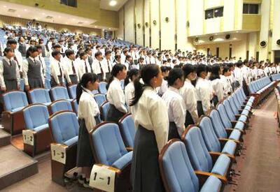 本校の伝統である『胡桃祭(文化祭)』。「弁論の部」に続き「合唱の部」が、坂戸市文化会館大ホールを会場に開催されました。この日まで、合唱祭実行委員会が一生懸命に準備し、開会前に最終確認。開会セレモニーでは、全校生徒による合唱『夢の世界を』。3学年揃っての合唱はとても壮観でした!ステージ発表の最初は、1年生による課題曲の全員合唱『天球図』。これからシリーズで各学年の素晴らしい発表の様子を配信していきますので、乞うご期待!
