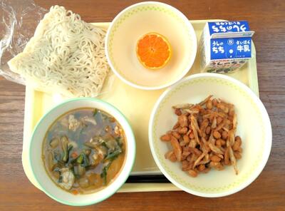 【今日の給食】 11月7日(金) 投稿: 浅羽野中 管理者 (16:03) 【本日のメニュー】 五目ラーメン、ごぼうと大豆のカリカリ揚げ、菊花みかん、牛乳 ごぼうと大豆のカリカリ揚げは、ごぼうと大豆をカリッと揚げることがポイントだそうです。食べやすくするために、ごぼうと大豆に甘じょっぱいタレがからまっています。食物繊維も豊富です。今日も美味しくいただきました。 -