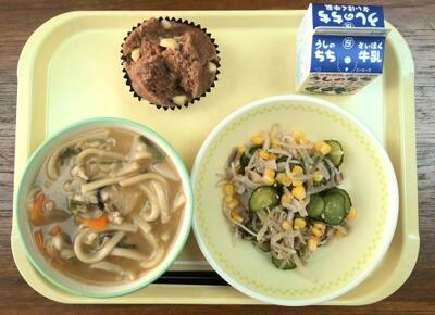 【今日の給食】 11月27日(木) 投稿: 浅羽野中 管理者 (18:32) 【本日のメニュー】 埼玉県産野菜たっぷりうどん、もやしのサラダ、ココア蒸しパン、牛乳 今日は、心も体も温まる「煮込みうどん」です。今日のうどんの野菜は、埼玉県産の里芋、小松菜、ねぎ、大根を使っています。坂戸市の農家の皆さんが、丹精込めてつくった野菜。今日も感謝して美味しくいただきました。 -