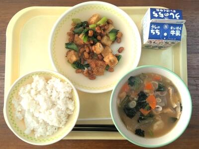 【本日のメニュー】 すいとん、ふわっかり揚げ、ごはん、牛乳