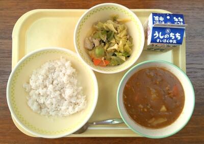 【今日の給食】 2月12日(木) 投稿: 浅羽野中 管理者 (17:04) 【本日のメニュー】 🍛ラレーライス(ルウ・麦ごはん)、鶏肉と野菜の香味炒め、牛乳 今日は生徒たちに人気の🍛カレーライスです。もちろんルウは一から手作り!卒業していく3年生たちは、給食を食べることができるのも、あと残り15日。皆で楽しそうに味わっていました。今日も全校で美味しくいただきました。 -