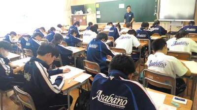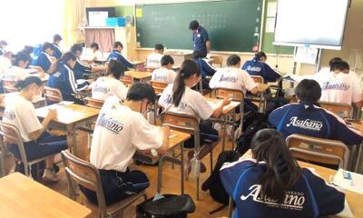 坂戸市では、11年前より市内全中学生に確かな英語力を身に着けさせる一助として『英語検定試験』を実施しています。1次試験のこの日、浅中生全員が自ら選んだ「級」で、一生懸命に試験に臨む姿が見られました。3級以上の合格者による2次試験は、11月9日(日)に市内全中学校の生徒たちが一斉に坂戸中学校を会場に受験します。