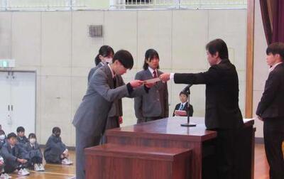 令和7年度第3学期の始業式を厳粛な中にも温かみのある雰囲気の中、浅中生の立派な姿で挙行することができました。お陰様で、冬季休業中も事故や事件に遭うこともなく元気で凛々しい浅中生が式場に一堂に集いました。開始5分前には整列完了。校歌斉唱につづき3名の代表生徒から「3学期の抱負」が発表されました。校長式辞では、「大切なまとめの3学期、次のステージへの準備の0学期」を意識して一日一日を大切にしていくことに加え、名君と称される米沢藩主の上杉鷹山の言葉『為せば成る、為さねばならぬ何事も。成らぬは人の為さざるなりけり』を引用して激励の言葉が。生徒たちは終始、微動だすることなくしっかりと式に臨んでいました。式後は表彰があり、全国人権作文コンクールで最優秀賞を受賞した生徒より素晴らしい発表もありました。