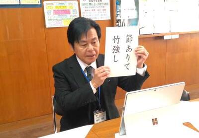 学校朝会をリモート形式で行いました。校長からは冒頭、1年生の校外学習、2年生の修学旅行が多くの学びのある素晴らしい成果が見られたものであったことを、3年生には私立高校等の入試の大きな山を終えたことの労い、最後の公立高校を受験する仲間たちのために学年全員で整った環境づくりを継続し応援していこうと話をしました。また、「立春」・「節分」について触れ、『節目の大切さ』について竹を例に挙げて話をしました。竹の「しなやかな強さ」の理由は「節がある」ことから、私たちも一つ一つの節(節目)を大事にすることで「けじめ」が生まれ竹のような『しなやかな強さ』が身についていくこと、さらには、竹林の根がすべて繋がっていて地震にも耐える強固なもであることから、『協力の強さ』についての話をしました。そして、大きな「節目」である卒業式には全員が卒業証書を手に、堂々と胸をはって浅中を巣立っていこうと訴えました。